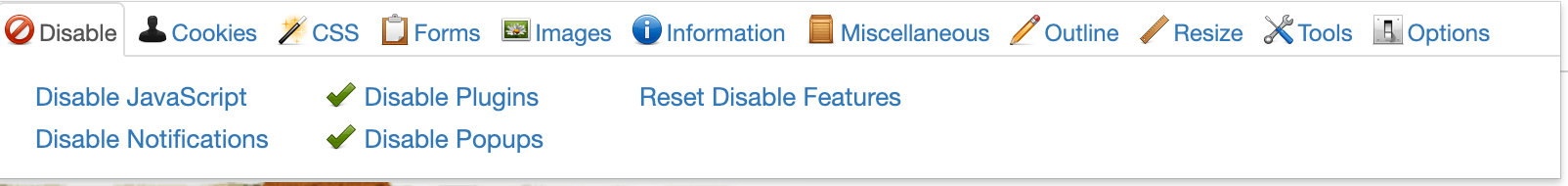 JavaScript ve CSS’yi kapatmak, bu sorunların tarayıcıda nerede oluştuğunu belirlemenize yardımcı olur.