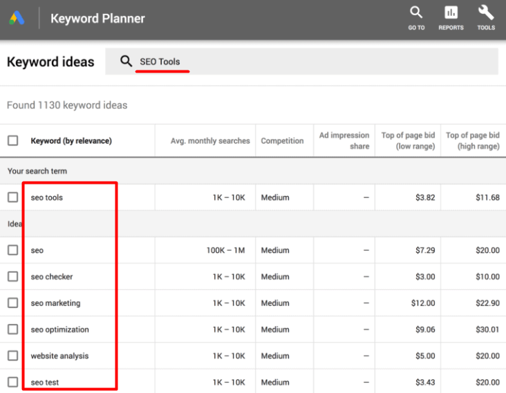 1. Google Keyword Planner