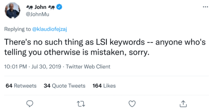 “LSI anahtar kelimeleri diye bir şey yoktur, aksini söyleyen herkes yanılıyor, üzgünüm.”