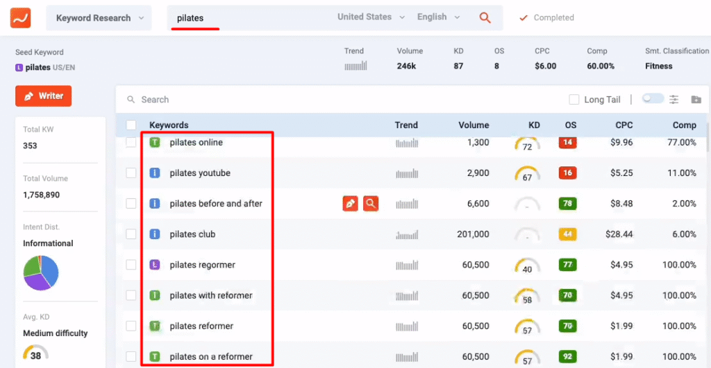 Bir diğer LSI anahtar kelime araştırması yapabileceğiniz araç ise SEMrush.  SEMrush’ın SEO Content Template aracını kullanarak da LSI anahtar kelimeleri bulmak oldukça basit bir süreçtir. “SEO Content Template” alanına tıkladıktan sonra içeriğinizle alakalı anahtar kelimeleri girdiğinizde SEMrush, size diğer benzer veya ilişkili anahtar kelimeleri listeleyecektir. Bu listeyi inceleyerek, içeriğinizin bağlamını daha iyi anlamanıza yardımcı olacak LSI anahtar kelimelerini bulabilirsiniz.