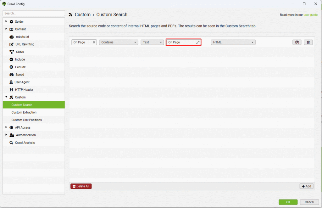 Custom Search web sitesinde belirli bir şeyi ararken çok faydalı bir özelliktir. Örneğin iç linkleme fırsatlarını değerlendirmek için belirli bir anchor seçtiniz ve bu anahtar kelimenin geçtiği içerikleri tespit etmek istiyorsunuz. Custom Search aracıyla bunu kolayca yapabilirsiniz.