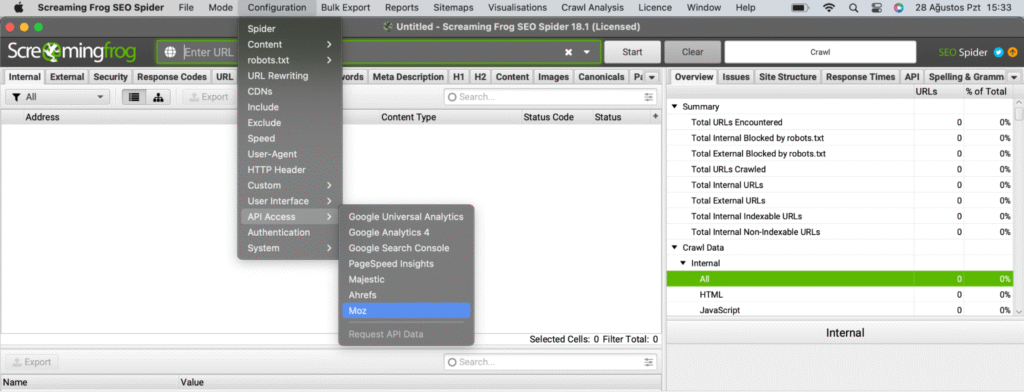 Screaming Frog aracının deneme sürümüyle 500 URL’e kadar tarama yapabilirsiniz. 500 URL’den fazlası için tarama yapmak istiyorsanız lisans satın almalısınız. Screaming Frog Lisansı ile birlikte sınırsız URL taraması yapabilir ve diğer avantajlı özellikleri kullanarak derin analizler yapabilirsiniz.