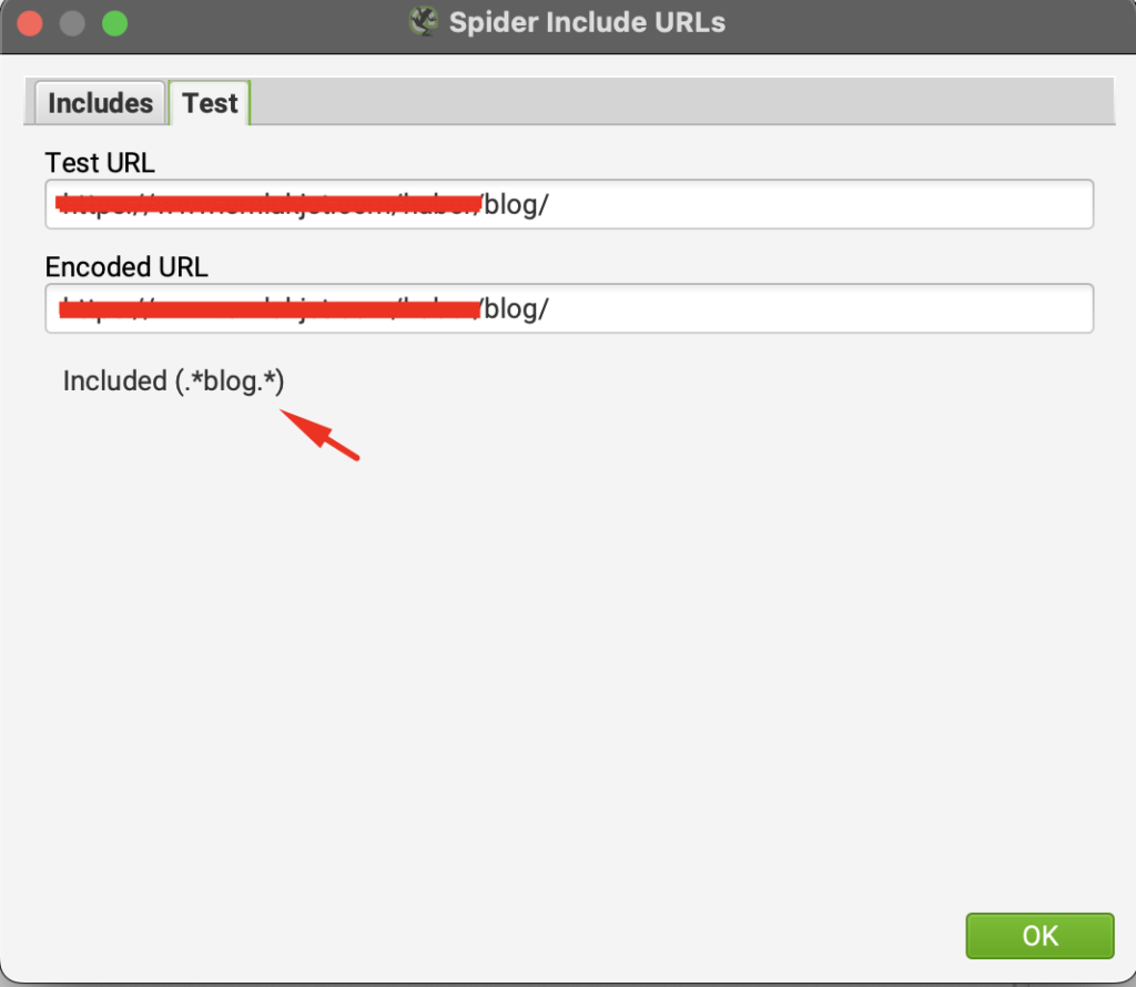 Örneğin sadece /blog/ içeren sayfaları taramak istiyorsunuz. Bunun için .*blog.* kuralını yazarak tarama yapabilirsiniz. Yazılan kuralı test etmek için test aracını taramayı başlatmadan kullanabilirsiniz.