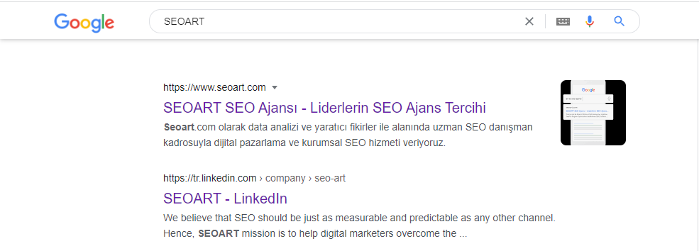 Aşağıdaki görselde seoart aramasında, web sitesinden sonra sosyal medya profil sayfasının geldiğini görebiliyoruz.