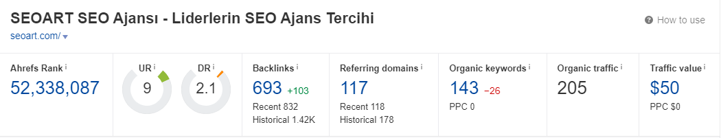 Yukarıdaki resimde SEOART web sitemizin toplam 117 domainden 693 backlink aldığını görebilirsiniz.