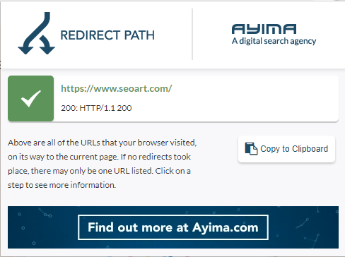 Bu eklenti ile ziyaret edilen sayfanın hangi HTTP kodu ile çalıştığını görmek ve redirect var ise hangi sayfaların yönlendiğini anlamak mümkün. Redirect sorunları üzerine çalışırken büyük kolaylık sağlayan Redirect Path ücretsiz olarak kullanılabilmektedir.
