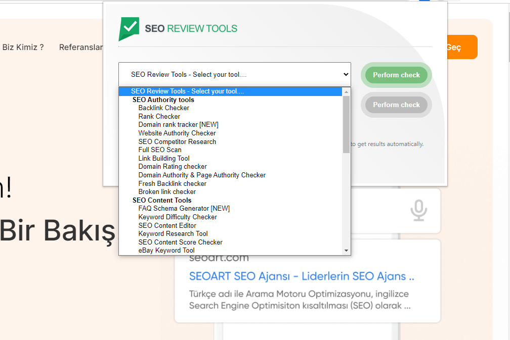 Yukarıda belirtilen tüm Google test araçlarına ait kısayollar uzantıda mevcut. Bunlar haricinde uzantının sağladığı kendi test araçlarını da kullanabilirsiniz. Bu araçları kullanarak, içerik analizi, rakip analizi, kırık link tespiti, backlink kontrolü gibi teknik analizleri de yapabilirsiniz.