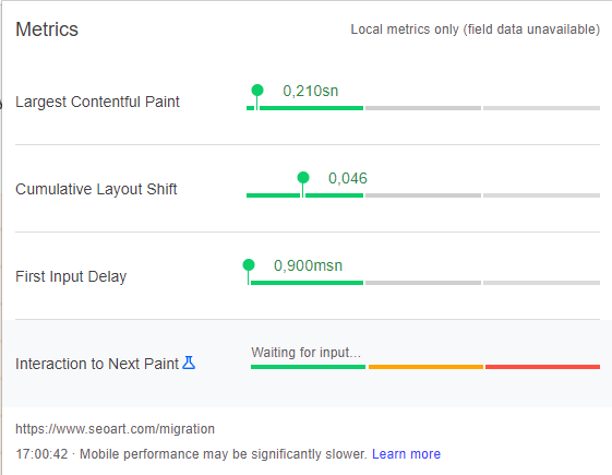 Core Web Vitals verilerini hızlıca ölçmeye yarayan bu uzantı ile sayfaya ait Cumulative Layout Shift(CLS), Largest Contentful Paint(LCP), First İnput Delay(FID) ve Interaction To Next Paint(INTP) gibi verileri görebilirsiniz. Sayfa hızı ve önemli web verileri üzerinde çalışıyorsanız bu ücretsiz uzantıyı kullanabilirsiniz. Rakiplerin ve kendi web sitenizin core web vitals verilerini kolayca öğrenebilirsiniz.